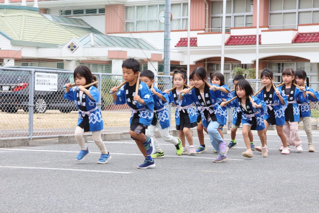 運動会の最初の「流星太鼓」、とても緊張した面持ちのこどもたちでした。拍手が聞こえた時にはホッとしたようです。