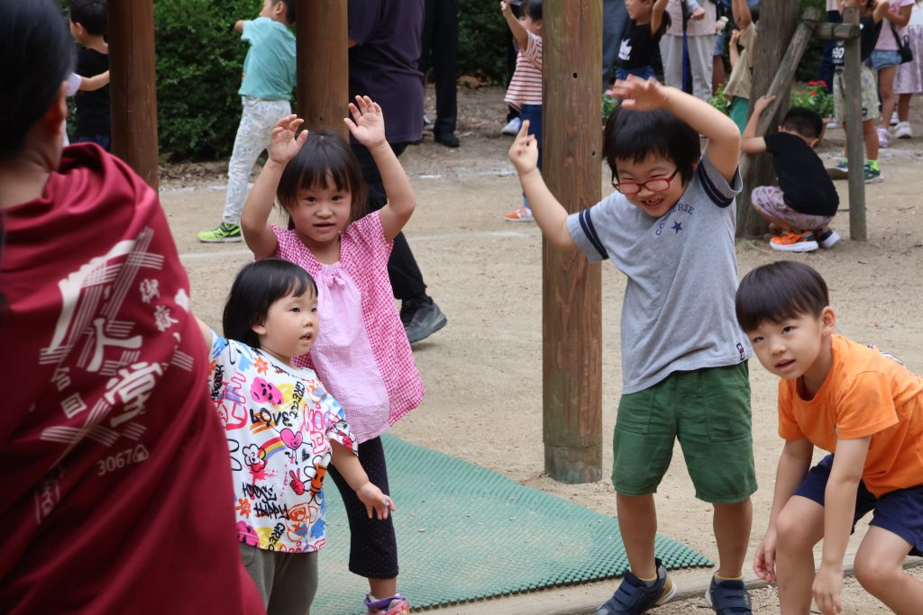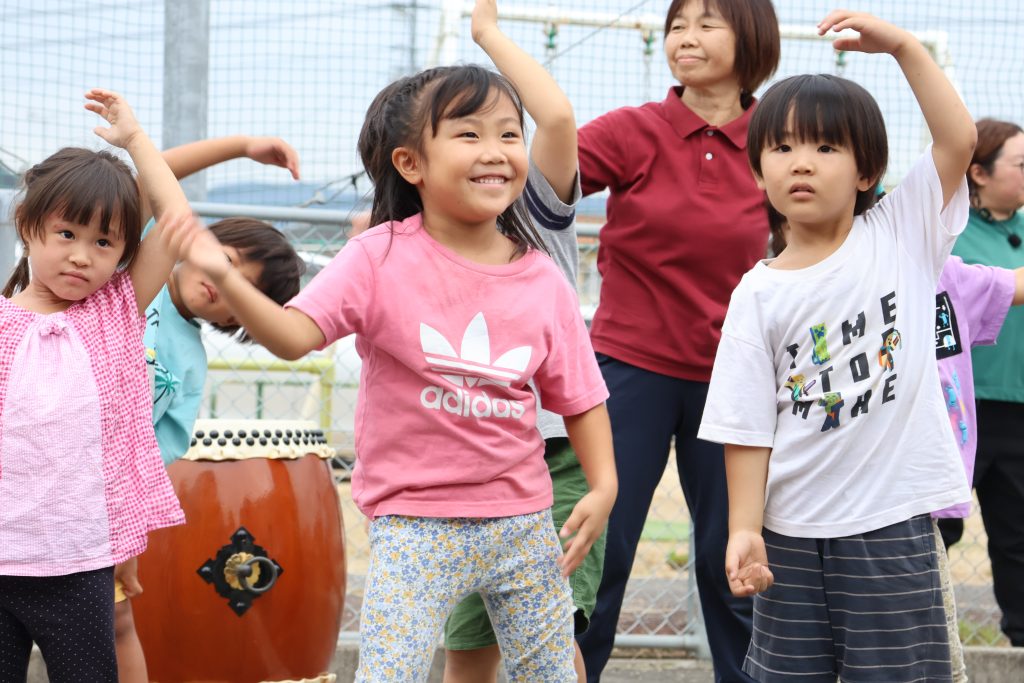 たんぽぽ・つくしグループの踊り「タッタ」では、友だちと一緒にみんなでニコニコ笑顔で踊っています。